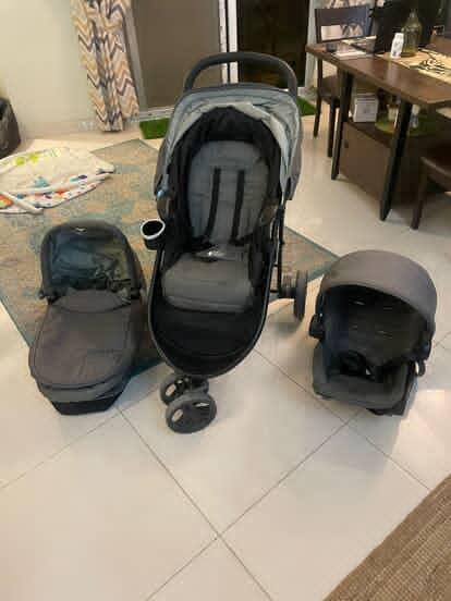 Graco Travel System has Everything Original. One Secure Belt in Car Seat / Cot is Missing