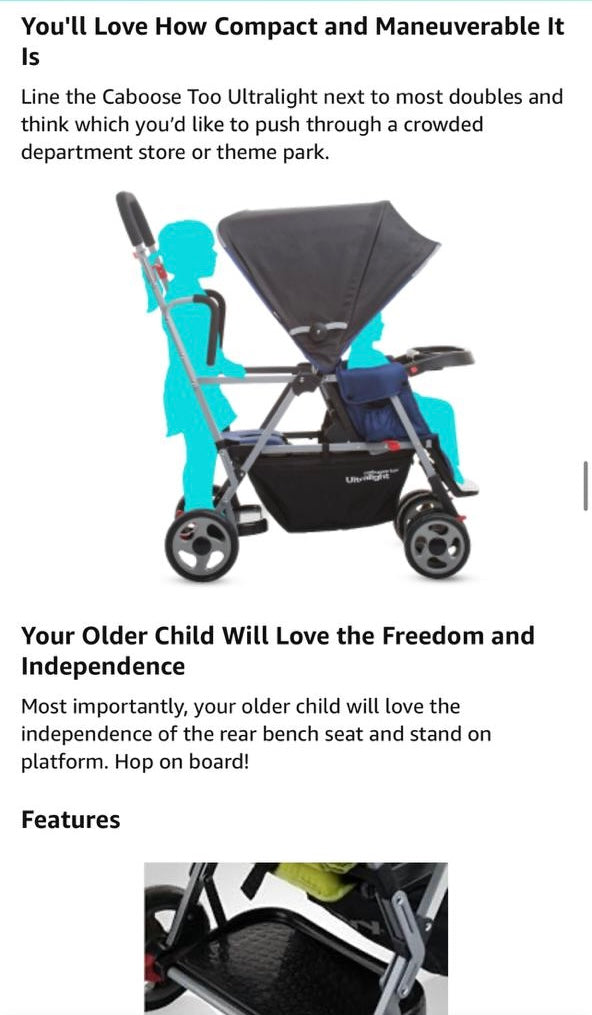 “We really need two full size seats because my older child still likes to nap while we’re out.”