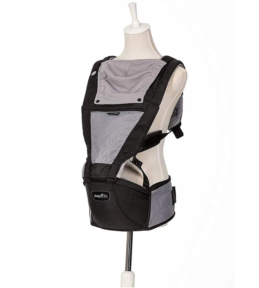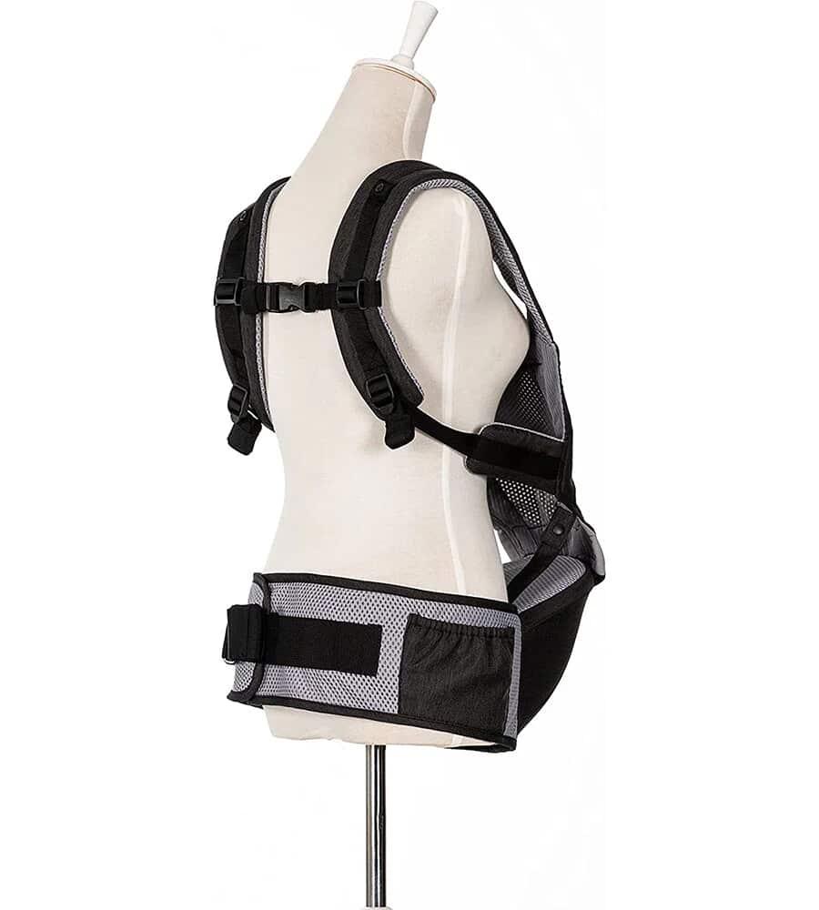 Use forward or as a backpack Adjusts to a waist stool