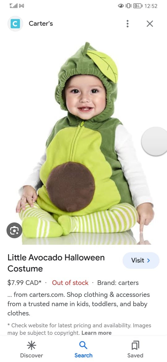 Avocado Costume. Size: 24m